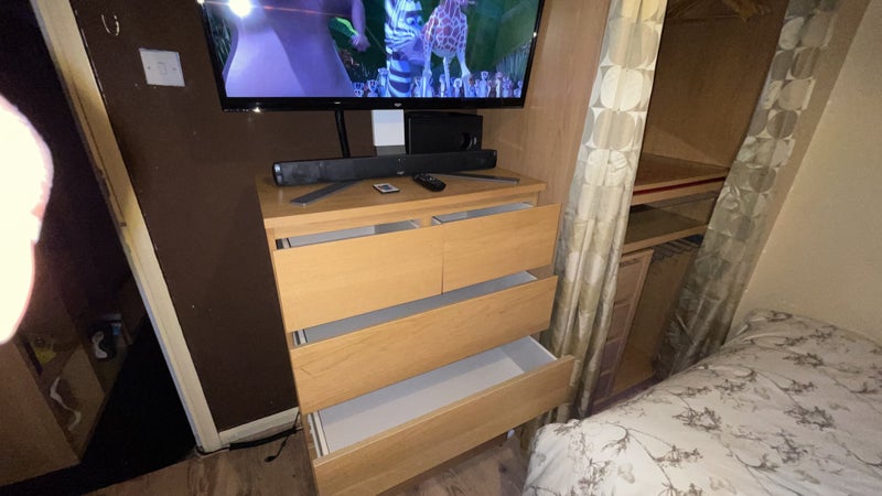 Just below the average rent price of the area this Furnished Double Room Includes a comfortable wooden DOUBLE BED with plenty UNDER BED STORAGE, L SHAPED SOFA with table, Large WARDROBE and CHEST OF DRAWERS. And for when u finish work a 40-inch HD TV with SOUNDBAR Included (Netflix capable).