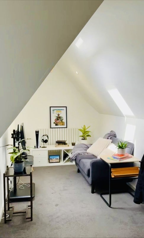 • Fully furnished, including a separate sleeping area, a sofa /TV area and a work desk.