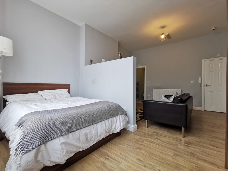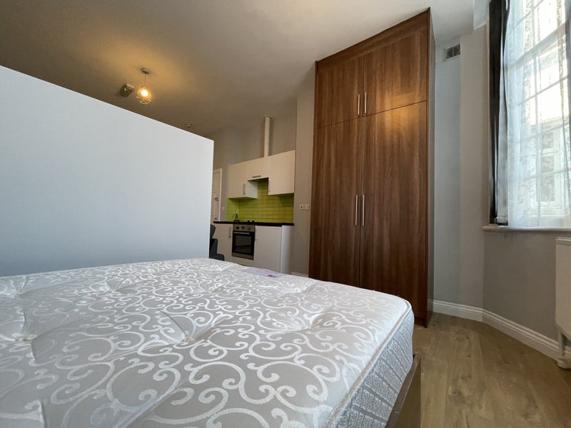 Recently refurbished Studio flat on lovely residential road, this property enjoys lots of natural light from bay windows and a well arranged layout. Finished with laminate flooring, high quality appliances, fitted floor to ceiling wardrobes, gas central heating, modern bathroom double glazing and neutral decor.