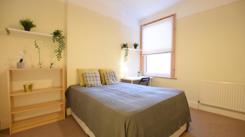 We are pleased to present this room with it`s own private bathroom. The room comes furnished with a comfy double bed, wardrobe, chest of drawers, desk and chair.