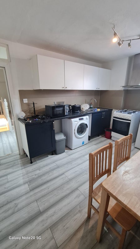 There is a good size communal fully fitted Kitchen/Diner/ living room equipped with a washing machine, fridge freezer, microwave, dining table and four chairs. There is a bathroom plus a separate wc. This room is for a single occupant only, sorry, no couples. The room is situated at the front of the flat and is the largest room in the flat.