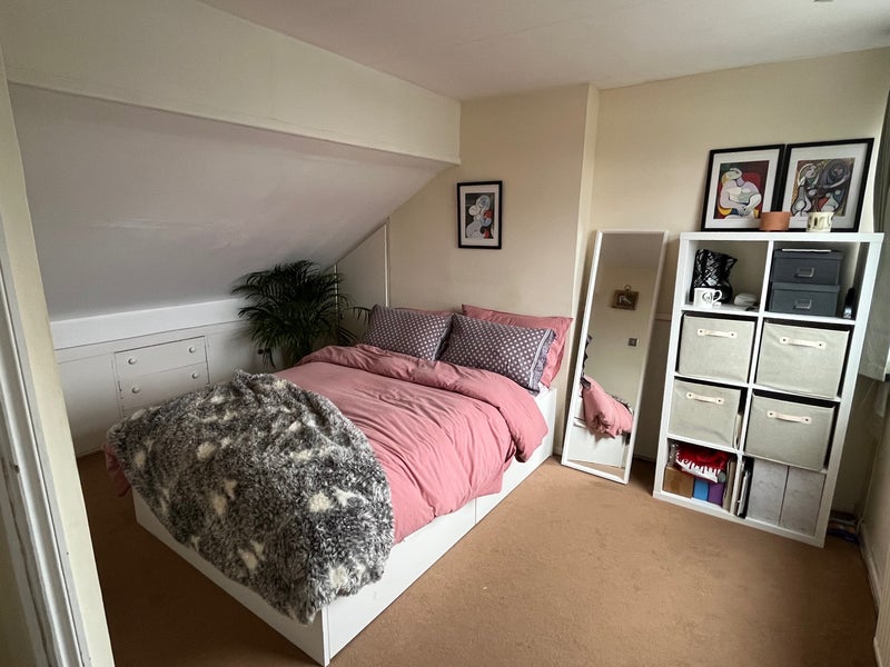 The second floor is the bedroom for rent, it’s a spacious double with room for a desk. Plenty of built in storage and lots of light. The bedroom will be unfinished (although if required I can ask my outgoing housemate if she would be open to sell anything particular I. e bed).