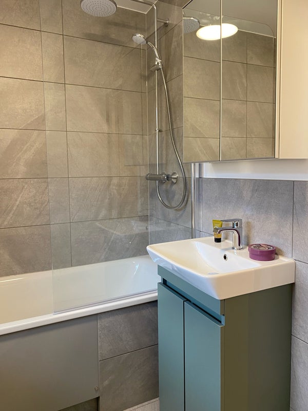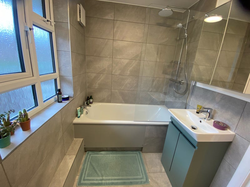 Large stunning bathroom, with bath & shower over, beautifully designed with heated towel rail.
