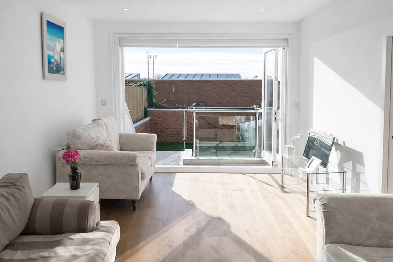 - Spacious open-plan lounge and dining area with bi-fold doors opening onto a sunny garden