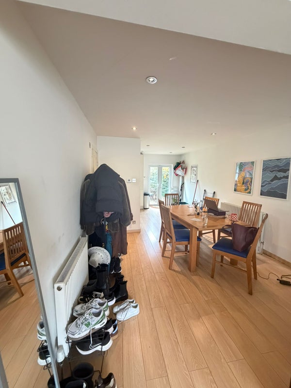 The room and the house: Large double bedroom, with built in 5 door wardrobes, so plenty of space if you have lots of clothes! Our current flatmate works from home 4 days a week and has ample space for her desk. The house is a modern 4-bed Victorian style property down a quiet street in Wimbledon, 10 minute walking distance from Wimbledon station and just over 5 minutes from South Wimbledon station, which has access to the northern line.
