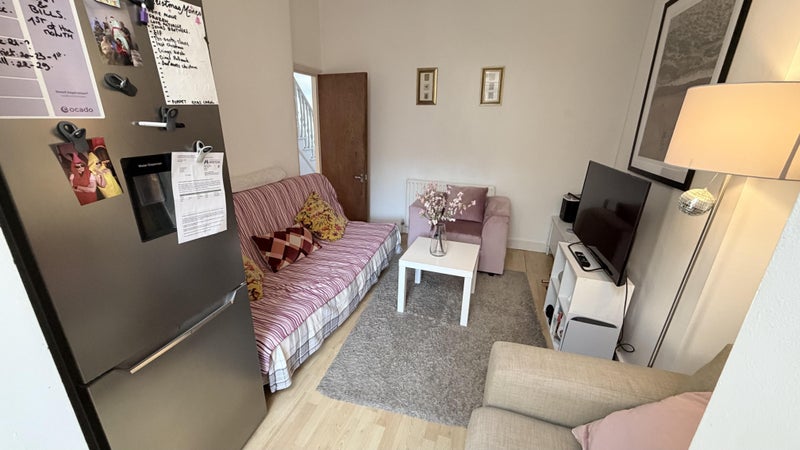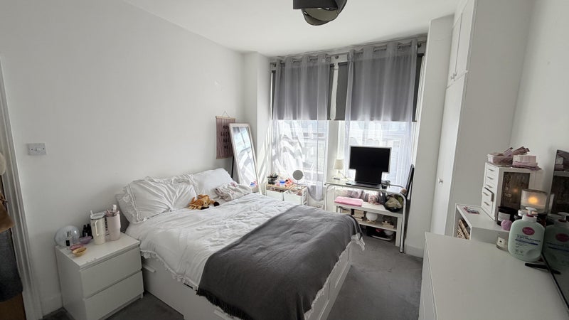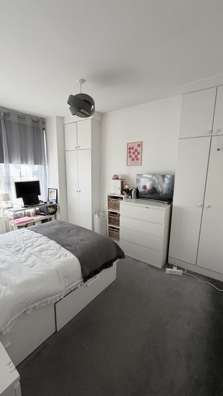 This first floor room is perfect for working from home, south facing with big windows so you would get a lot of sun during the day. The room comes unfurnished so plenty of opportunity to put your stamp on it. It has two large built in floor to ceiling wardrobes so there’s plenty of storage!