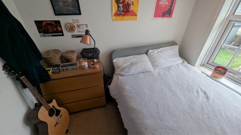 Furnished with a double bed and chest of drawers, this bright, comfortable bedroom is perfect for a professional or mature student seeking a relaxed, friendly home.
