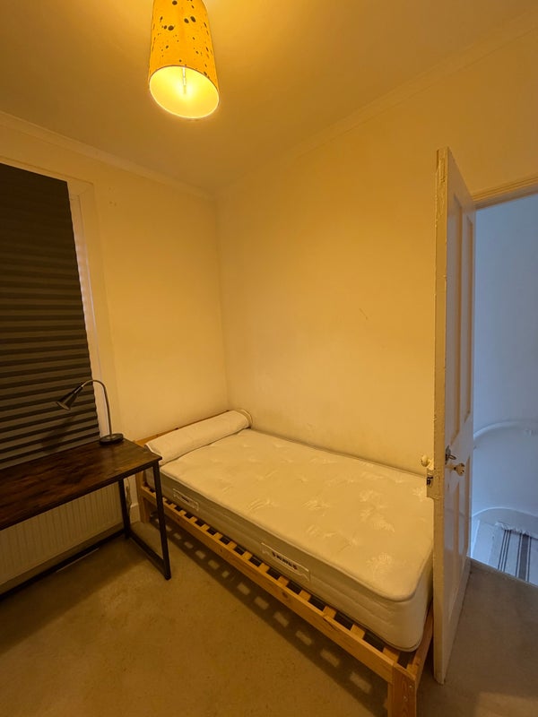 This is a nice single room upstairs in a newly refurbished kitchen and bathroom house with 2 housemates and a 2 year old cat. We are both in our mid twenties and we work full time, Im a waiter and she is a barista.