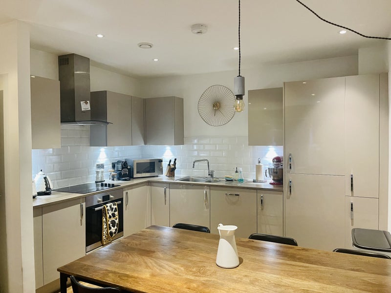 Sitting within the new-build Trinity Walk Development, my apartment is generous in size at roughly 88sqm. It is a lovely 2-bed, 2-bathroom flat, with open-plan living room and kitchen, sizeable hallway, and storage and laundry cupboards. The kitchen comes with all utilities and is fully fitted with a dishwasher, microwave, oven and fridge-freezer. There is a separate washer/dryer, also. The property is on the ground floor and comes with a large external terrace, which is amazing in the summer months. The apartment is safe and secured with external video cameras and is served by a concierge which is excellent for receiving packages when working.