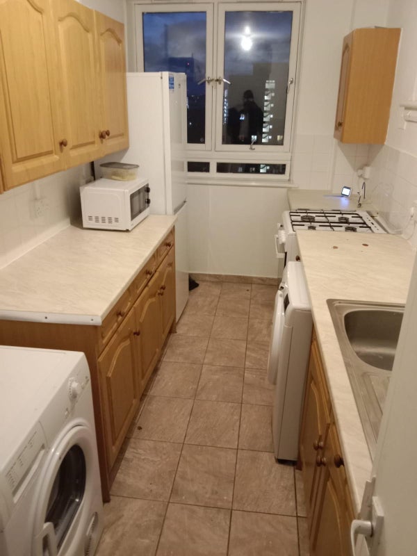 No familys with kids. 3 bedroom very spacious shops are behind the flat located in a park close to a train station such as Elizabeth line dlr national rail queen Elizabeth hospital nearby.