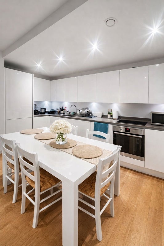 The flat is within easy walking distance of Woolwich Arsenal DLR and the Elizabeth Line, offering fast access to Canary Wharf, the City, and Central London.