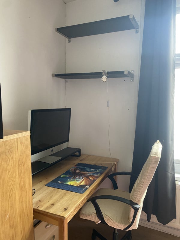 the room comes unfurnished, but due to the nature of the household, if you tell me your preference, i can surely spare some appliances if needed (the I mac and the speaker are for picture purpuse only)