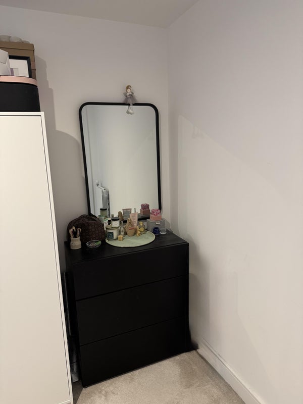The room comes furnished with a comfortable double bed, wardrobe, chest of drawers and bedside table (please note: desk and small drawer next to the bed are not included).