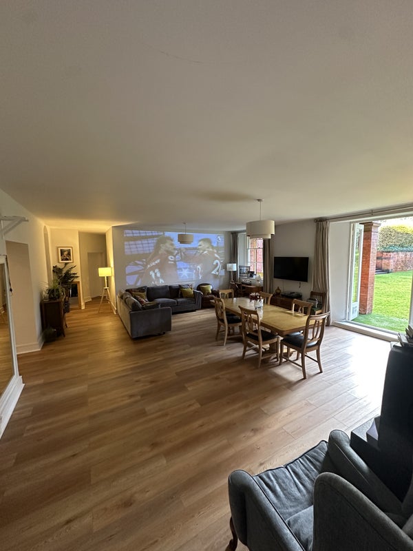 Huge living space with projector screen viewing with all sky / movie / footy channels etc