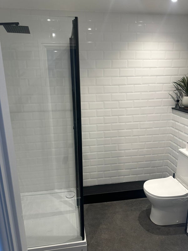 3 Double Ensuite Rooms – modern bathrooms with sleek black detailing
