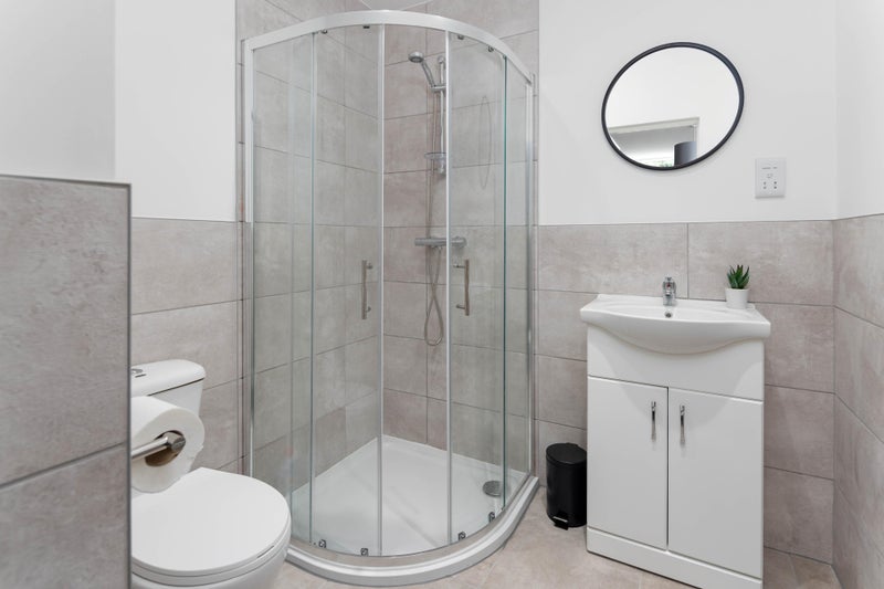 🚿Large en-suite with shower, toilet, sink, vanity unit and mirror