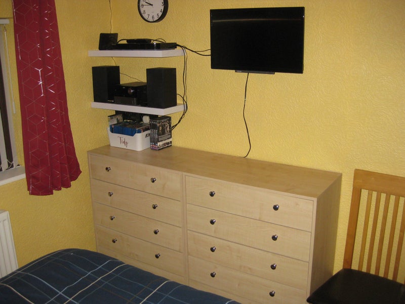 Double room, 2 double wardrobes, 2 sets drawers, double bed with plenty bedding, mirror, reading lamp, TV, DVD, small selection of DVDs, Radio, WI-FI, towels included and all bills. Fully equipped kitchen, Oven, Hob, Microwave. Air Fryer, Toaster and Dishwasher, no more washing up !!!! Use of kitchen, shared bathroom with walk in shower and bathroom cabinet, utility room with washing machine and tumble dryer, garden, washing lines for pegging out, off road parking. One big soft chocolate Labrador lives here too. Please contact for any further details and any questions. I am retired and spend some time away (looking after my mum) and only really trustworthy people to apply. Rent can be weekly in advance or monthly in advance. Deposit (£100) and security required (£100). Full time workers please.