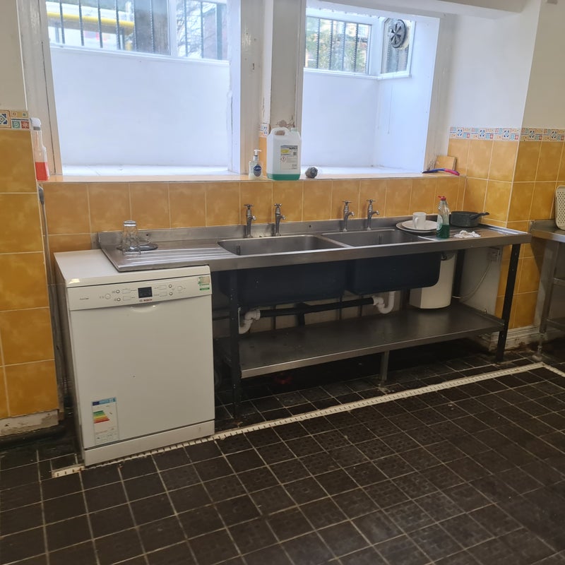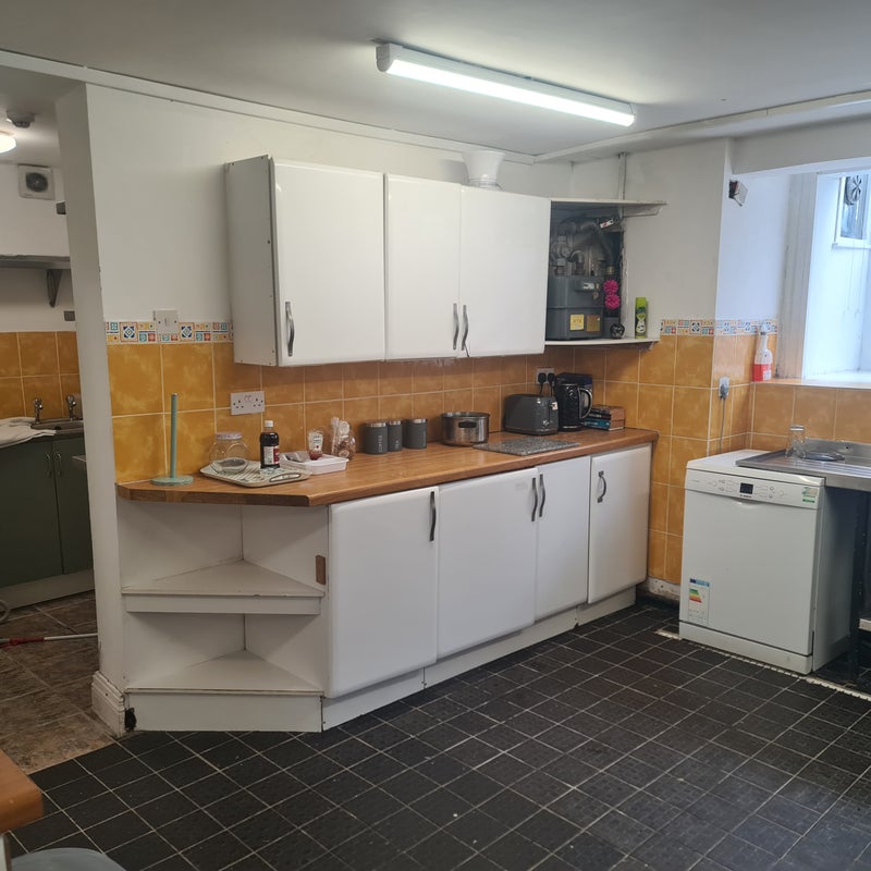 As well as the kitchen area in your apt, we also have two kitchens you can use. The basement (larger) kitchen area has 8 hobs and two grills/ovens, 2 x microwaves and is stocked with plates, cups, cutlery, pans etc.