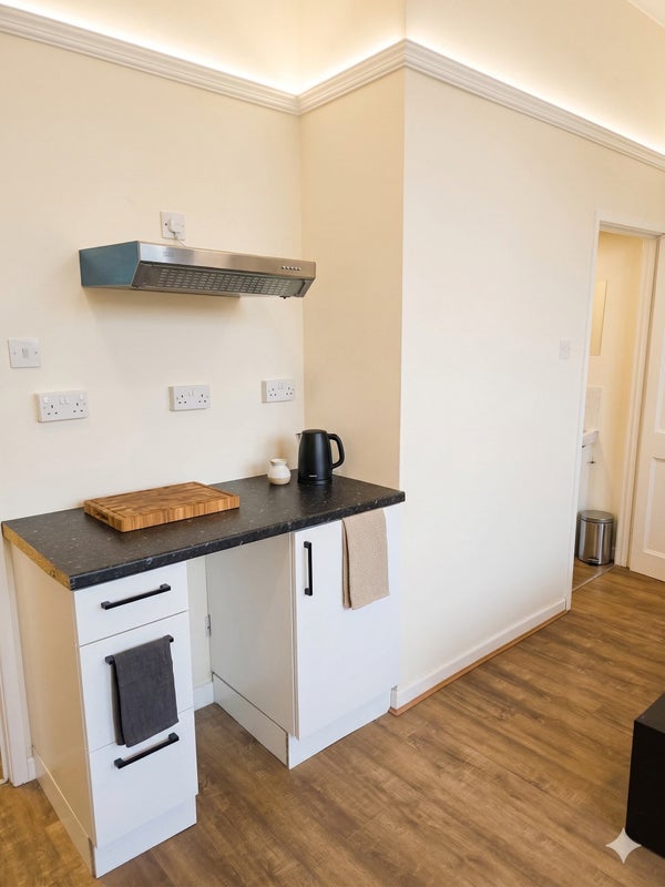 There's an ensuite toilet, sink and kitchen area and the shower room is right next to the room.