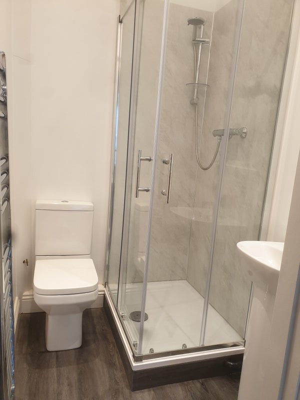 * Living room/Bedroom as 1 room, feature fireplace and large bay window, new laminate flooring and the flat is re painted.