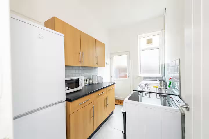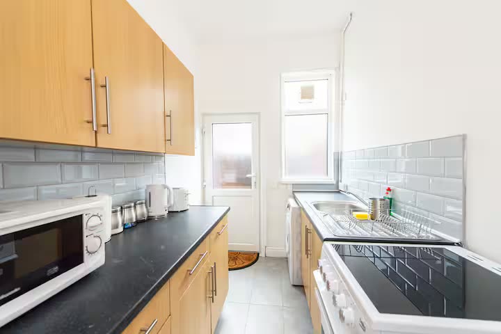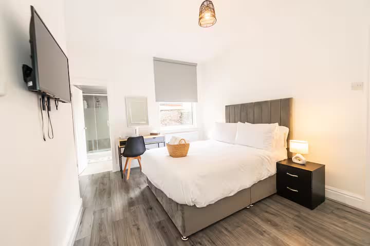 A comfortable four-bed terrace house with spacious living areas offer a relaxed place to relax and watch some TV with the TV provided in the living room.