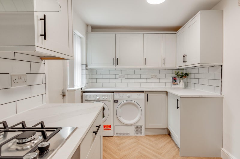 The kitchen is fully equipped with a washing machine, and tumble dryer, an under counter fridge, and a fridge freezer and an additional one too for extra storage!