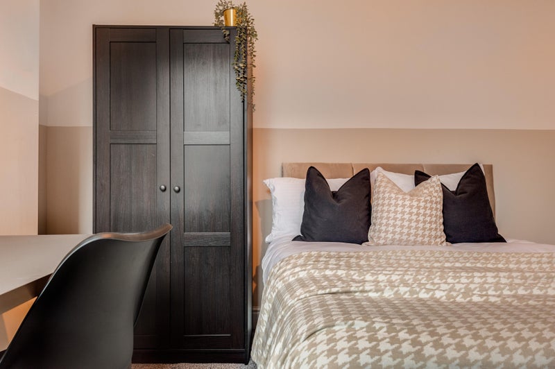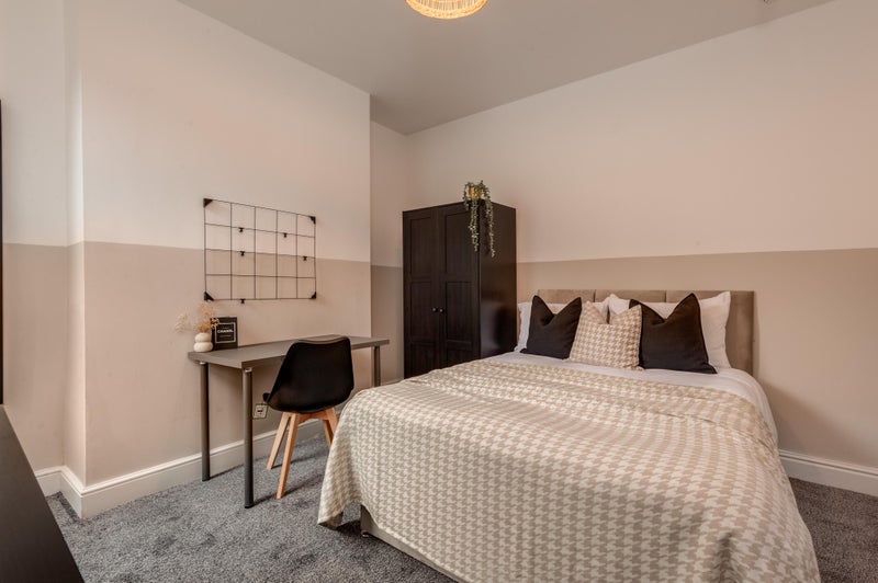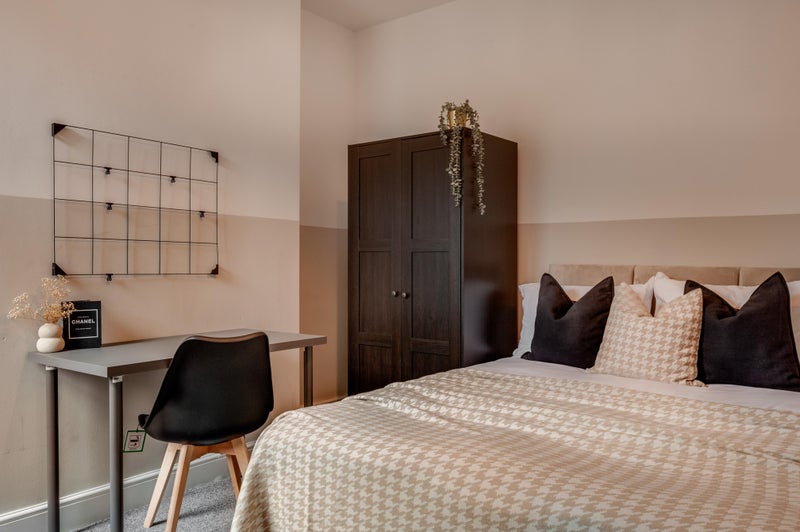 Your bedroom is to the second floor and is super spacious, fitted with a double bed, double wardrobe & chest of drawers!