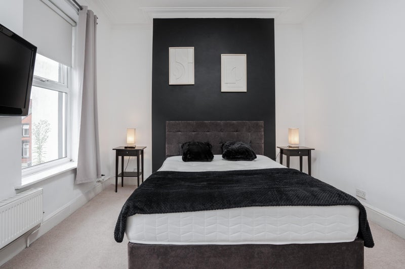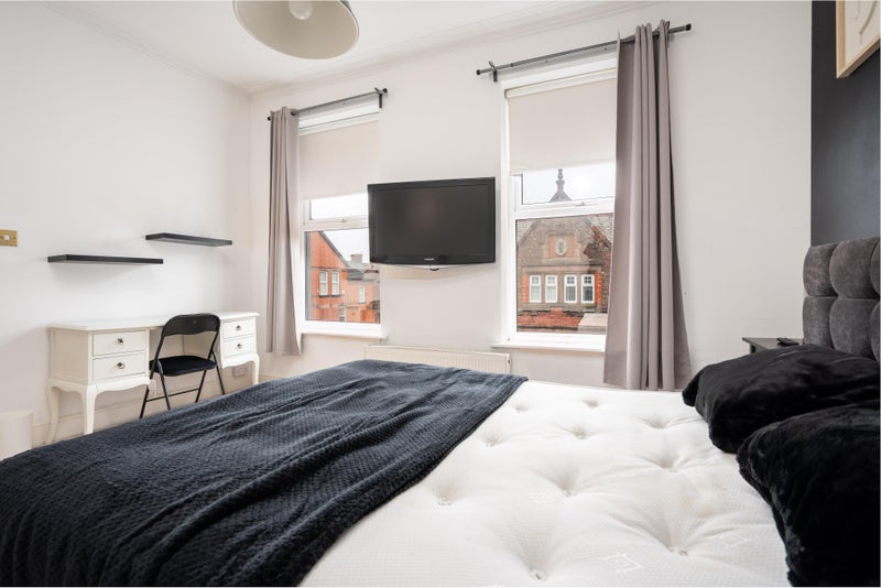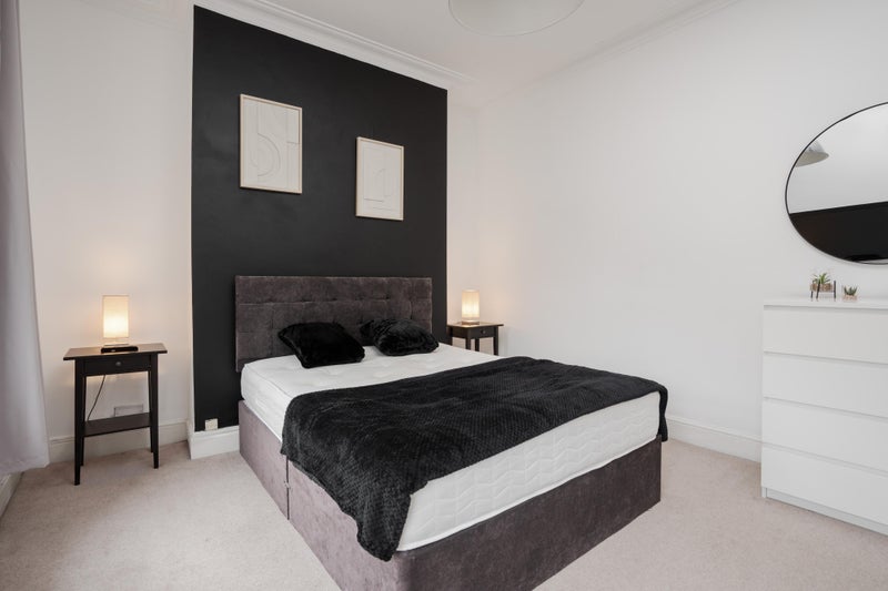 A beautifully presented, modern double room available in a high-quality professional house share. This spacious room is fully furnished to a high standard, featuring a comfortable double bed with storage, large wardrobe, chest of drawers, bedside table, and a dedicated workspace.