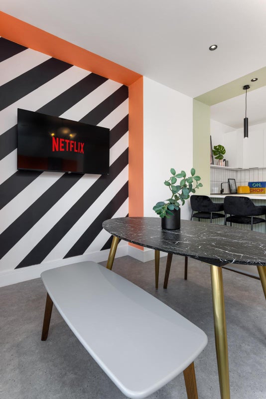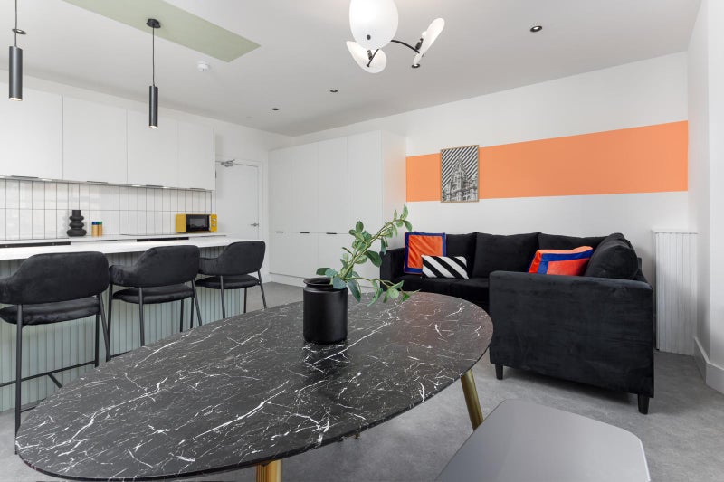 Your new home is quirky and full of life! This is not a boring house with just plain white walls, it has character and bold accents that will bring you happiness and energy whilst living here. With a fully equipped spacious kitchen where you can cook up a storm! With 2 induction hobs and 2 ovens so no stress of getting on top of your new housemates when dinner time comes around. A breakfast bar for those quick meals when you're on the go. Your lounge/dining area gives you the perfect area to host a dinner party with your new housemates. A cosy sofa to relax on with a smart TV on the wall to share watching your favorite movies and shows with your new housemates.