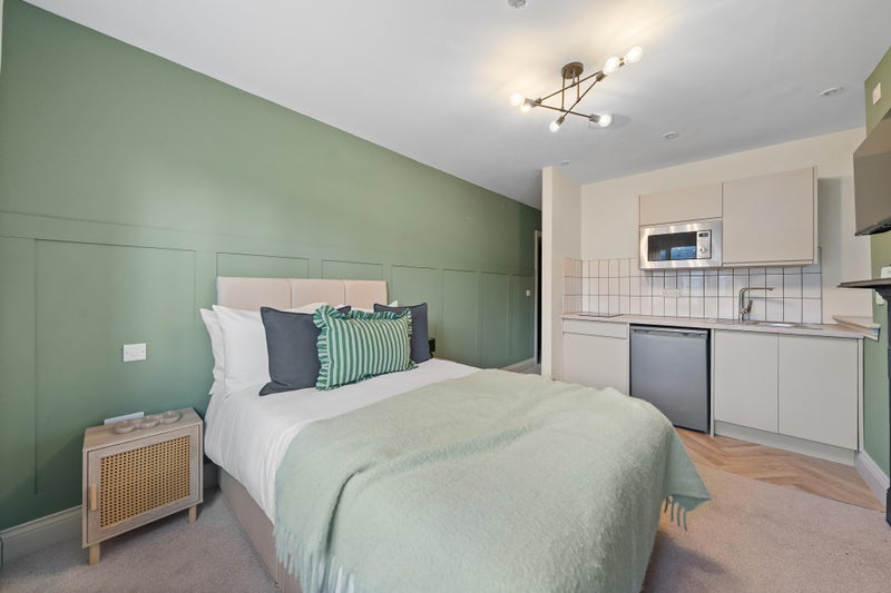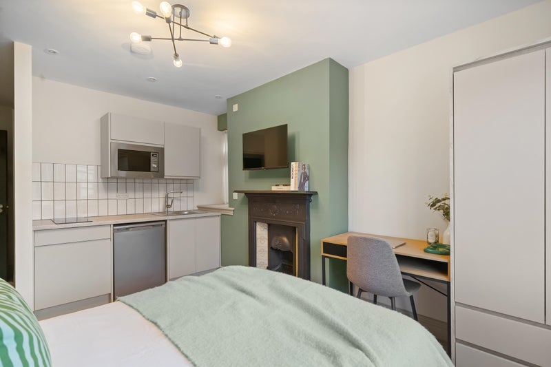 Your beautiful bedroom or should we say paradise! Starting off with your soft and comfy double bed, large wardrobe, a TV on the wall and a desk to crack on with work you do. Plenty of storage for you and a place to relax when your days are finished. Say goodbye to sharing a bathroom again! Your own luxury en-suite bathroom. If this wasn’t enough in your room, what about your own private kitchenette! A small fridge, sink, microwave, kettle and toaster, you can keep precious snacks safe! Midnight snacks just got a whole lot easier.