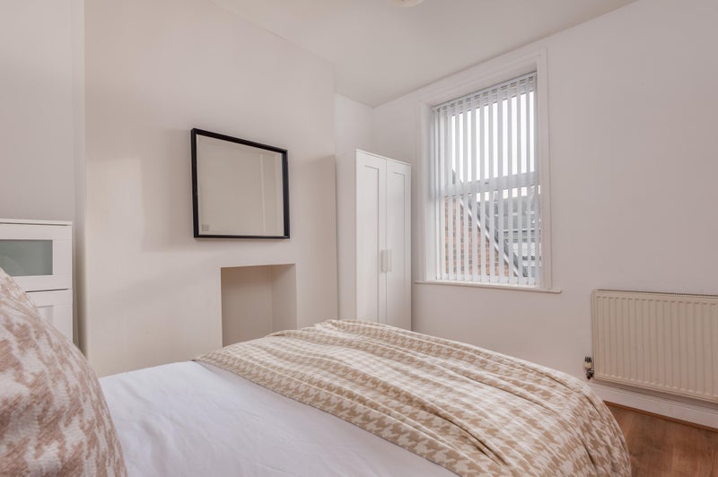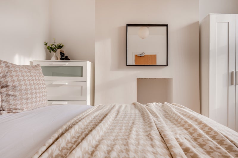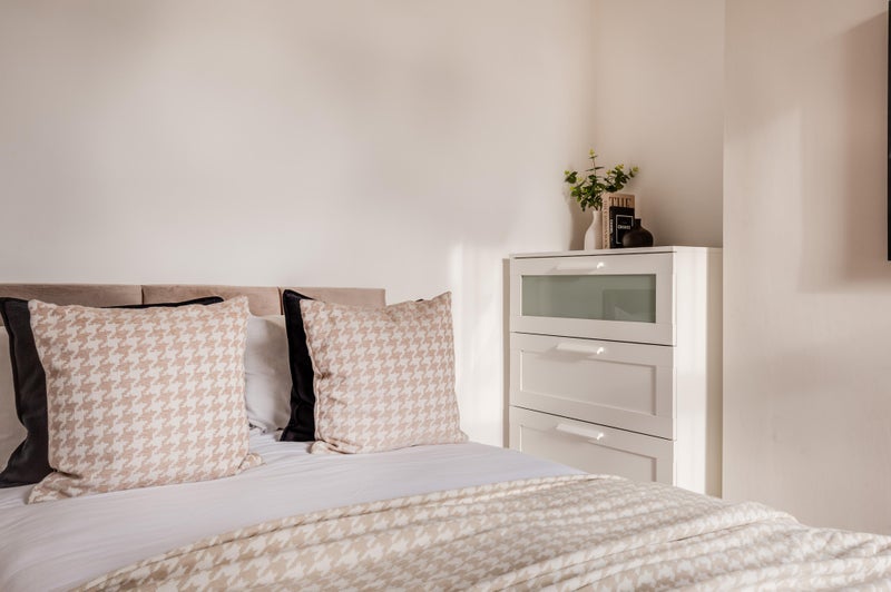 Your new bedroom is comfort on comfort. You have a soft double bed to throw yourself onto after a long day. Storage is never an issue here, a double wardrobe and a chest of drawers all for your belongings to stay.
