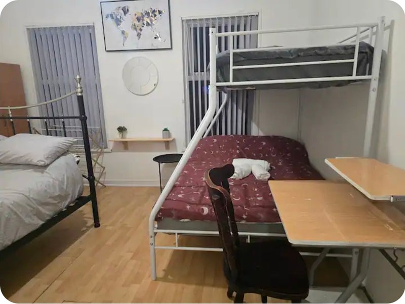 Take a break and unwind at this peaceful oasis. A master bedroom with a master bed and Bunk bed for family of 4 or 5. Bunk bed is suitable for children's.