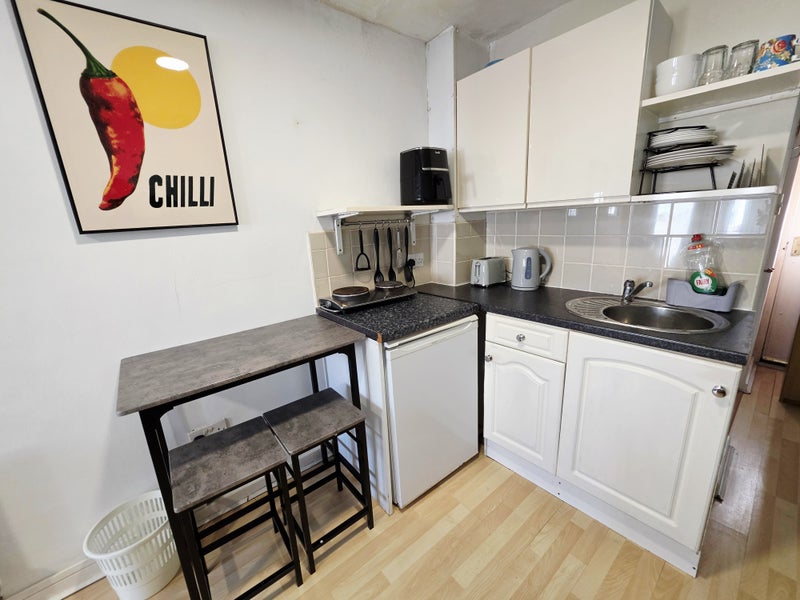Please note there is no washing machine in the property; however, launderette facilities are conveniently located just a 5-minute walk away.
