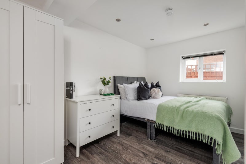 Your new room is a spacious and calming space for you to come into. You have a double bed with underneath storage to rest after a busy day. You have a chest of drawers and double wardrobe so no struggling for where to put all of your belongings!