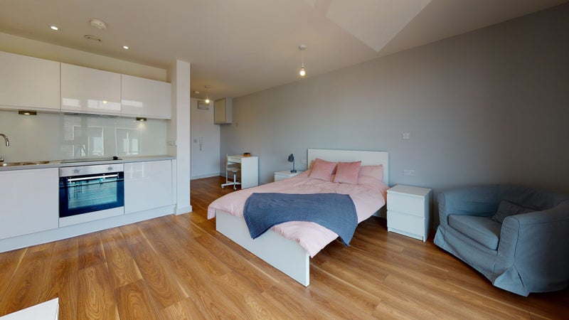 This is an open plan studio available from May 8th. Couples can stay over.