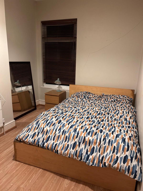 The house has five bedroom, only three of which are being let. It benefits from a spacious living room, two bathrooms (one on each floor), a large kitchen with all required amenities, a useable backyard, and some extra space for storage.