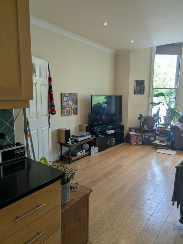 Double or Single room with it's own large bathroom with shower and bath. Also a spacious shared Kitchen/Living room full of light due to tall bay windows of the first floor looking over the park including a dishwasher and washing machine. Picture of room not included for privacy of current flatmate, but the room is 12.5x8.75 feet with two windows. Your private space will also include a section of wide corridor that will easily fit a chest of drawers and has a mantle ontop the radiator too!