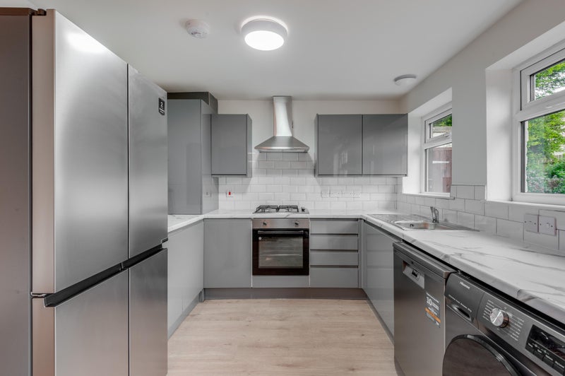 The kitchen is fully equipped with gas hobs, plenty of storage, a dishwasher, washer/dryer and an american sized fridge/freezer, so there's no fighting over who's got room for what. You have a massive back garden for when the sun decides to come out! There is also parking available outside the house.