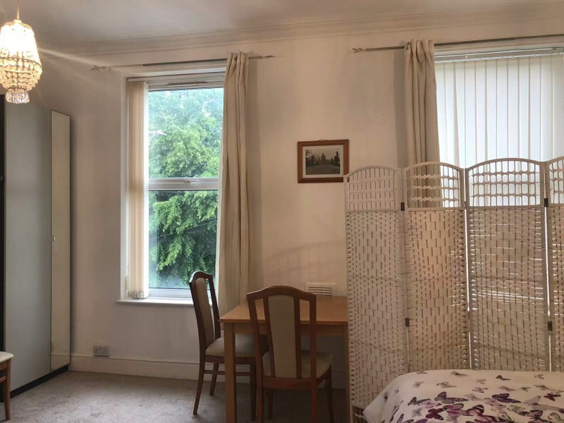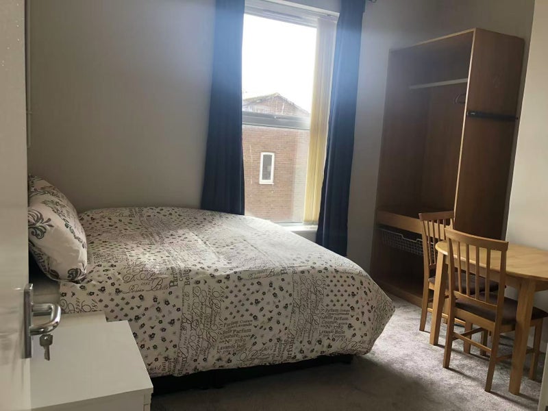 The property faces a lovely garden and is conveniently located near shops, cafés, a bus stop, and a train station. It’s about a 15-minute walk to the University of Liverpool and around 30 minutes on foot to Liverpool One.