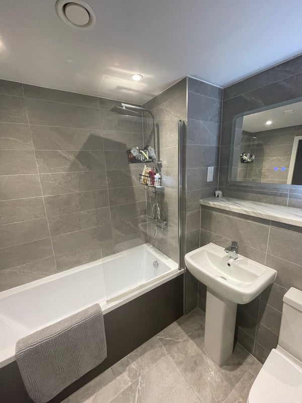 It’s a beautiful modern apartment and you’ll be sharing with 1 other female. The room is fully furnished with a tv, floor length mirror, double bed, drawers, wardrobe and the ensuite includes a bath.