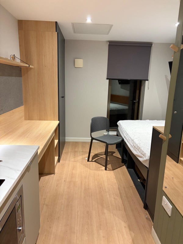 The studio is fully furnished and modern, with your own private bathroom, study space, storage, and kitchen area.