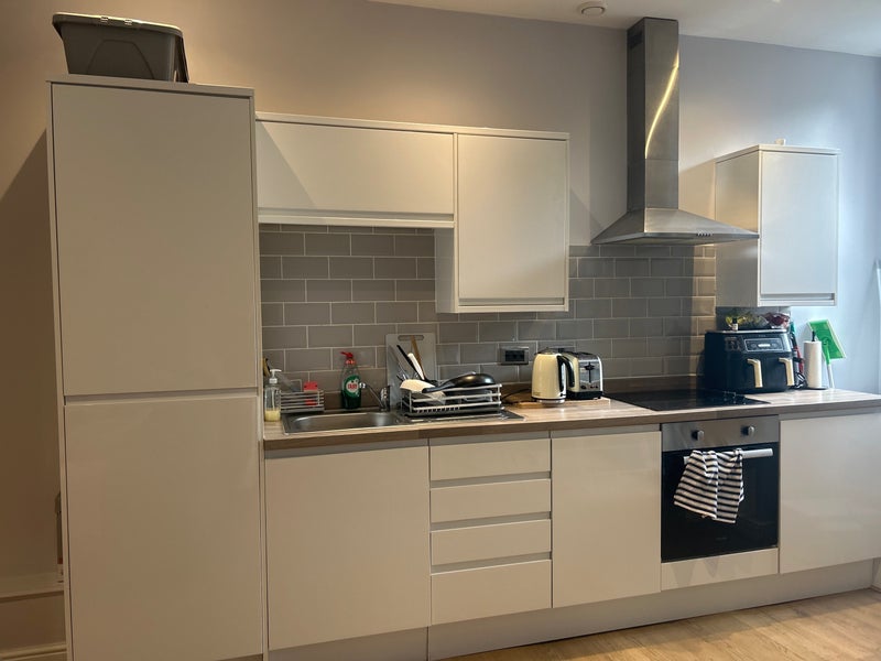 Flat is lovely and modern and bedroom available is furnished with good sized en-suite bathroom with a shower.