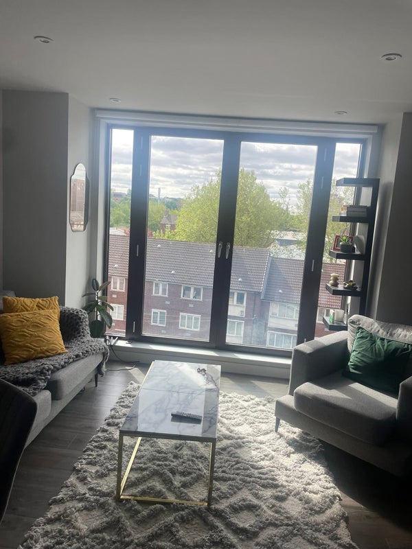The flat is lovely and in a great location around the Baltic Triangle on Parliament Square. Rent is £525 before bills. About £630 after bills.