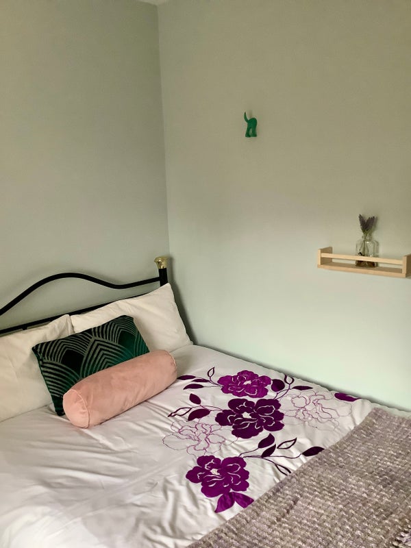 Small double room, fully furnished, with a garden view. Double bed, storage cupboard, own private bathroom downstairs with large bath and shower.