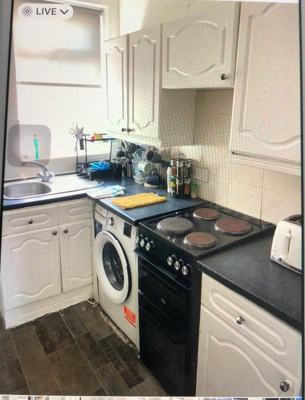 Shared living room, 1 shared bathroom and shared kitchen.