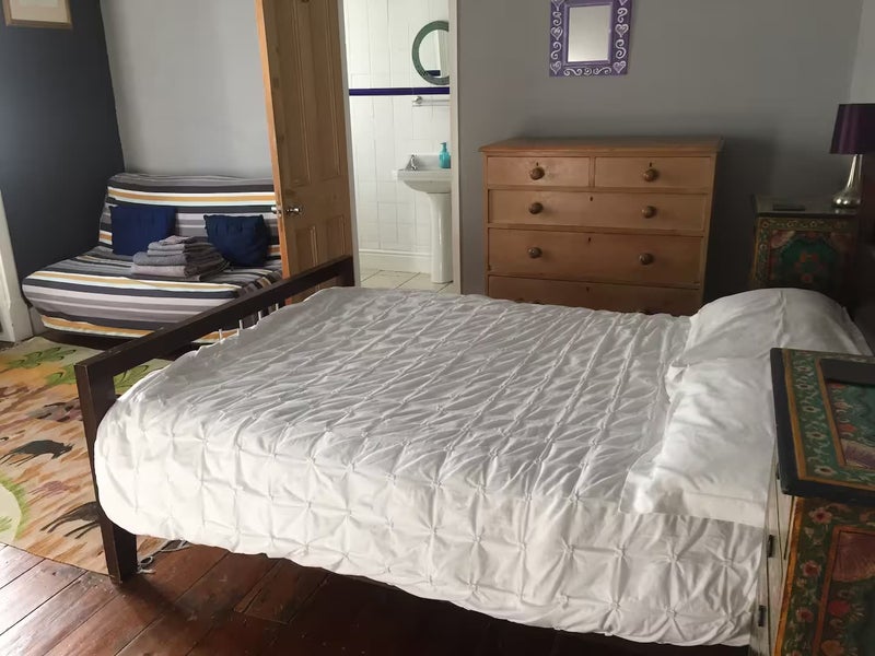 Large double room 4mx4m with double bed, sofa, desk, chair, TV, wardrobe, chest of drawers. Ensuite shower room. Cooking facilities with own fridge & cooker.