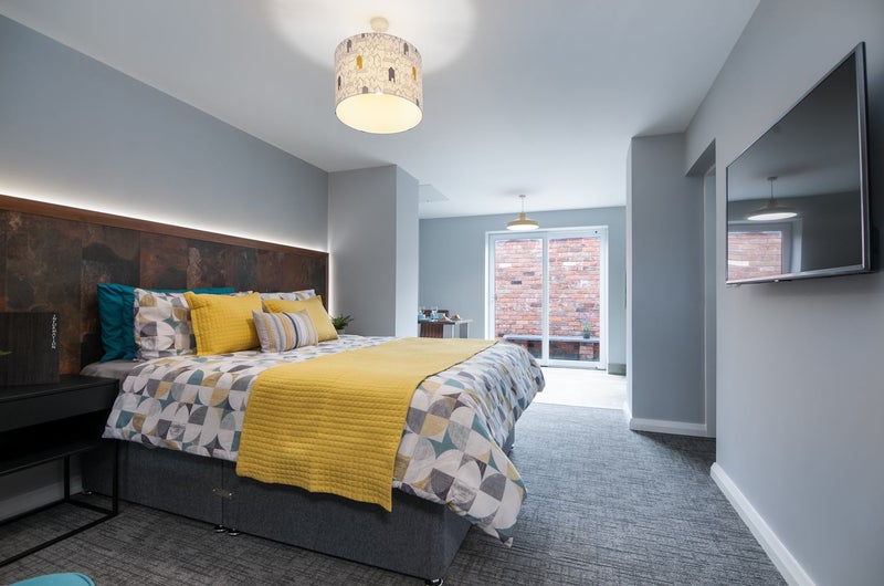 Each studio room benefits from having an en-suite bathroom finished to a high standard including bathroom vanity unit and electric led mirror and walk-in shower. Wall mounted 43” 4K Smart television and patio doors to an outside seating area.