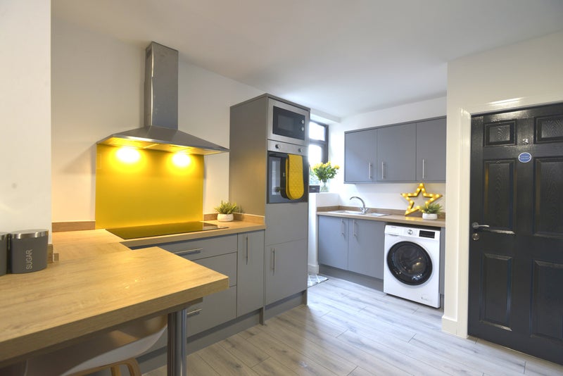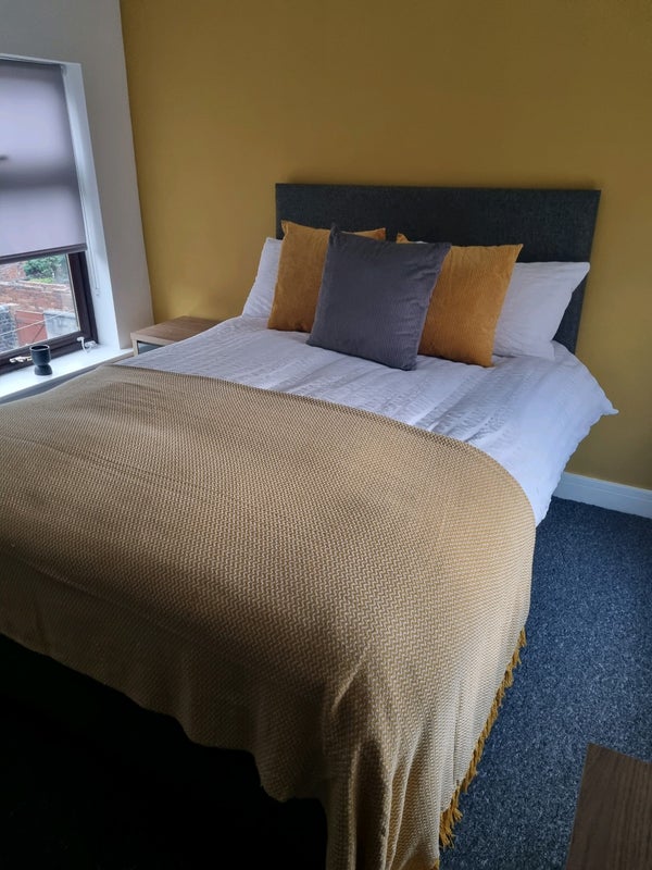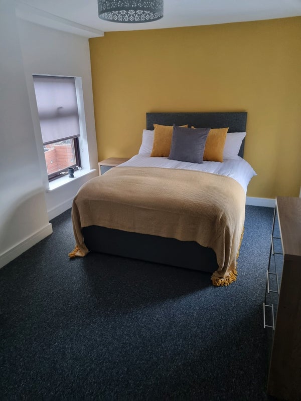 The room includes a large double bed with a quality mattress, ensuring a comfortable night's sleep after a hard day at work. There is a two-door wardrobe for all your clothes, a bedside cabinet, a set of drawers allowing you plenty of storage, a comfy chair, and a tv so that you can relax in your spacious room. Also, all bills are included in the monthly rent. The room is available from the 25th February