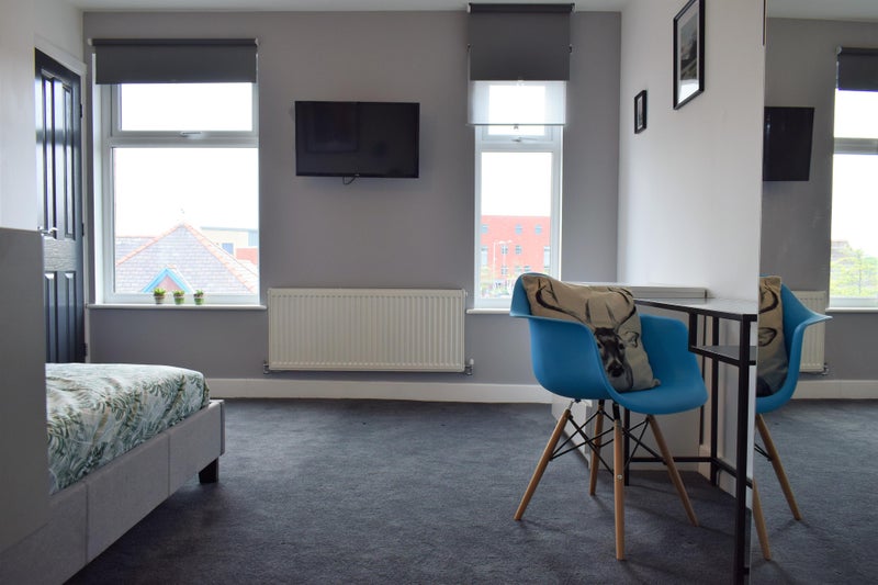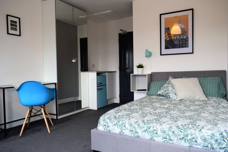 • Generous double rooms with private en-suite, beautifully furnished with bed, wardrobe, drawers, TV & fridge.