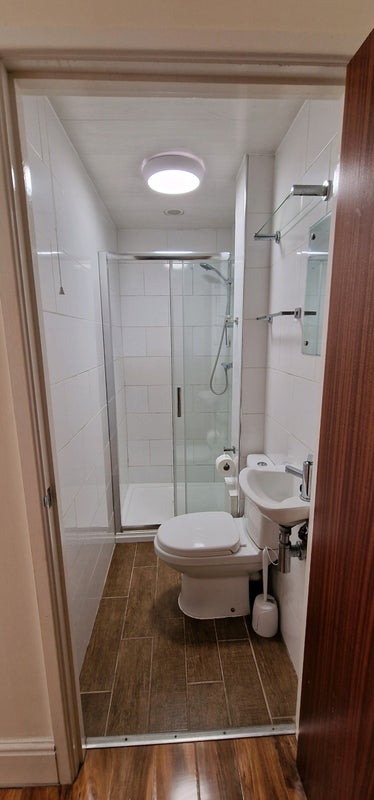 The room has a double bed, new en-suite shower room and kitchenette. Double wardrobe and bed-side cabinet, small dining table and armchair. There is a communal bathroom and kitchen also.